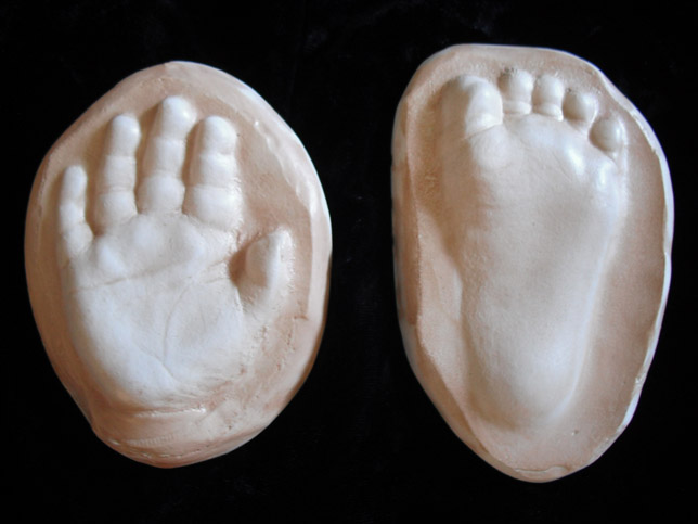 large oval, h/f, sandprint, stamping, holes and rope, shells